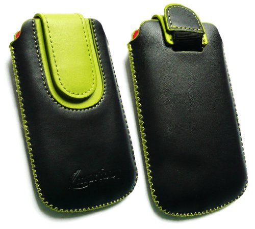 Critères pour les produits Emartbuy ® Value Pack Pour Samsung S5660 Galaxy Gio Noir / Vert Premium En Cuir Pu Faites Glisser Pouch / Case / Sleeve / Support (Taille Moyenne) Avec Un Mécanisme De Tirette + Compatible Usb Car Charger + Micro Protecteur D'Écran Lcd