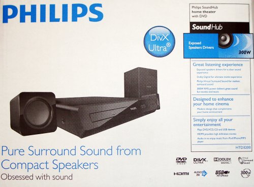 Détails sur le produit Philips HTD3200 Home cinéma DVD 5.1 HDMI DiVx 300 W RMS Noir
