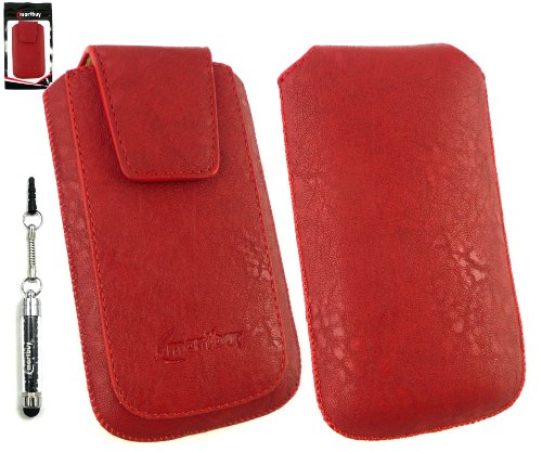 Caratteristiche per Emartbuy® Sparkling Pack Stylet Pour Apple Iphone 3G / 3Gs Classique Gamme Rouge De Luxe En Cuir Pu Faites Glisser Pouch / Case / Sleeve / Support (Taille XL) Avec Rabat Magnétique Et Pull Mécanisme Tab + Sparkling Mini Noir Stylus + Protecteur D'Écran Lcd