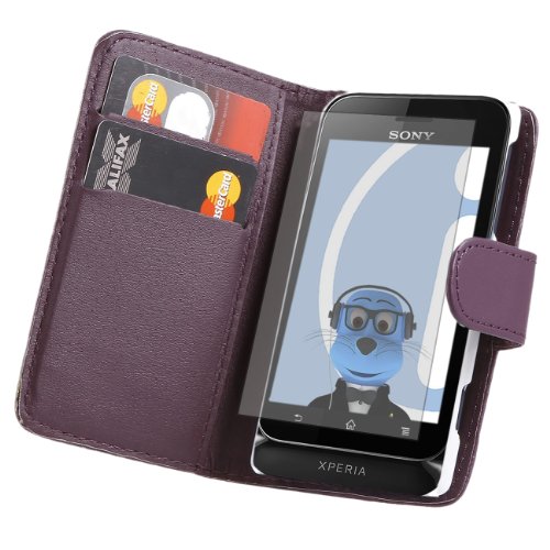 Détails du produit d' iTALKonline Sony ST21i Xperia Tipo PU Cuir VIOLET Retourner exécutif portefeuille de couverture de cas du livre avec le support de la carte de crédit / d'affaires et Protecteur d'écran LCD, plus le chiffon de nettoyage en microfibre