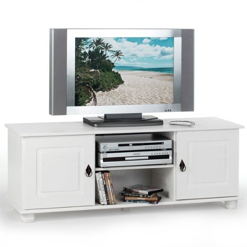 Description du produit pour Meuble TV BELFORT 2 portes + 1 niche 'Lasuré blanc'