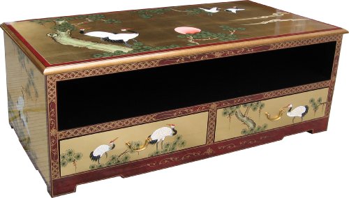 Détails du produit d' Meuble TV plasma chinois laque d'or 2 tiroirs 1 niche