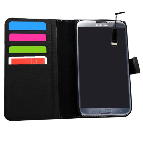 Détails du produit d' Samrick Étui protecteur en cuir authentique style portefeuille avec support de visionnage, emplacement cartes de crédits/d'entreprise, protection d'écran, chiffon en microfibres, mini-stylet pour écran capacitif conçu pour Samsung N7100 Galaxy Note 2